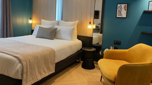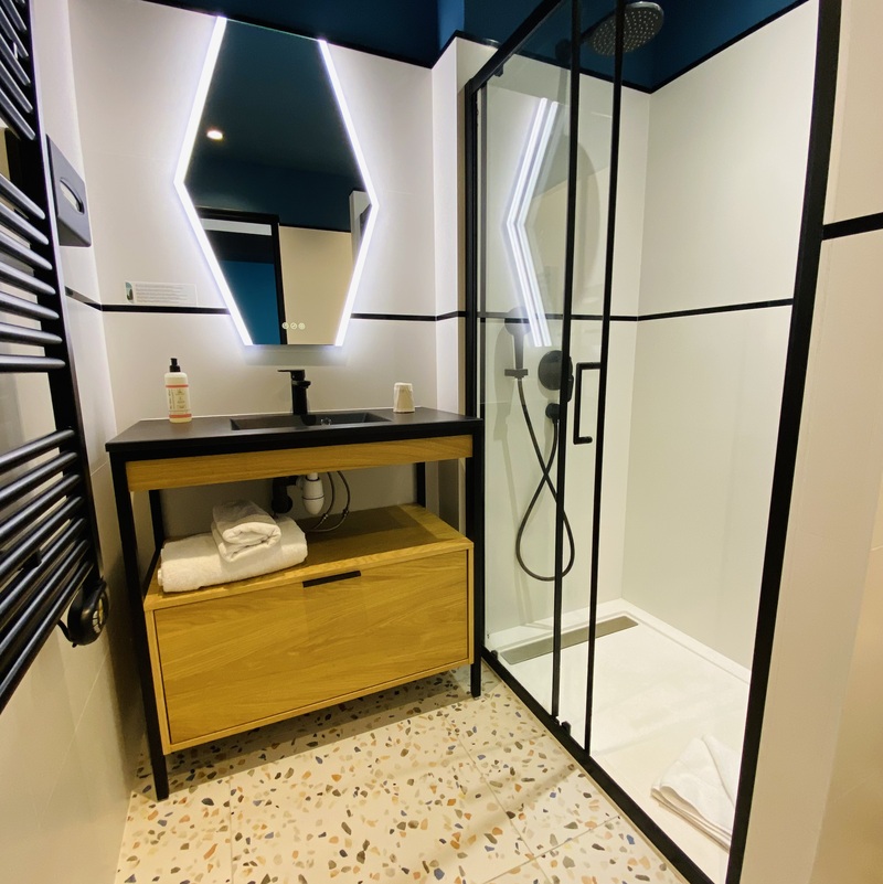 Laissez-vous séduire par cette chambre de 17m² au charme cosy, inspirant la sérénité et vous invitant à la détente. Dotée d’un lit double haut de gamme, d’un espace de travail et d’une salle de douche privative toute équipée, elle sera l’endroit idéal pour vous reposer après votre journée.