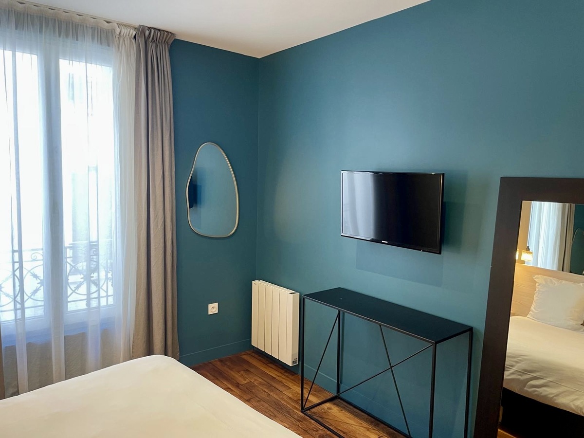 L’appartement est situé en face de l’hôtel, dans un immeuble indépendant, au calme et proche de toutes les commodités : transports en commun (RER C, métros 13 et 14, tramway et bus), supérettes, bars, restaurants, boulangeries, etc.